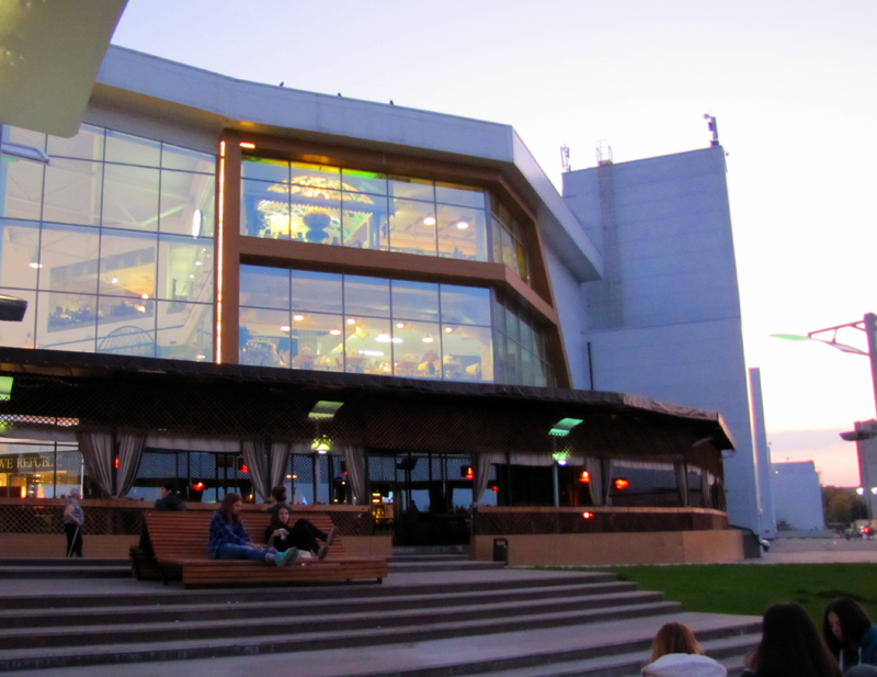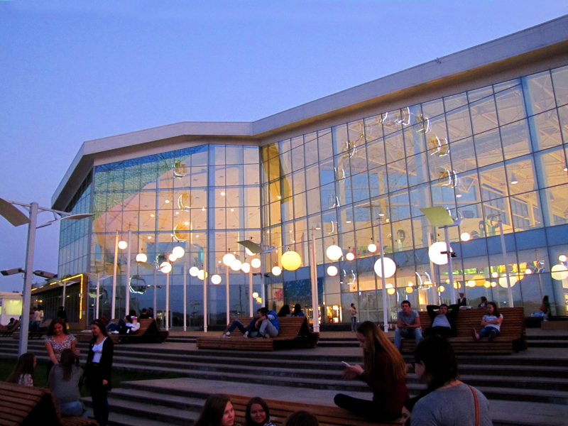 Красиво подсвеченное здание занятной архитектуры и колесо обозрения украшают собой окрестности. Жители центральной части города могут вернуться домой многими способами, в том числе на бесплатном транспорте. Жителям Севера придётся совершить прогулку до нужной остановки по плохо освещённому и неблагоустроенно