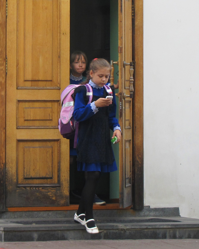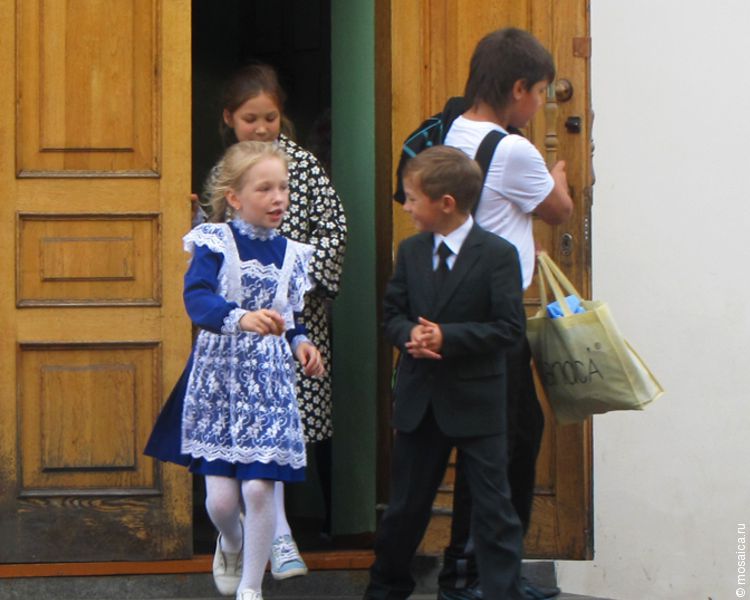В пристройке из красного кирпича располагается музей «Симбирская классическая гимназия», а в белом здании идут занятия. Звенит звонок. Школьники выбегают на улицу. Их там уже ждут родители.