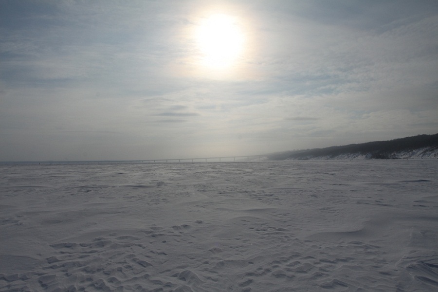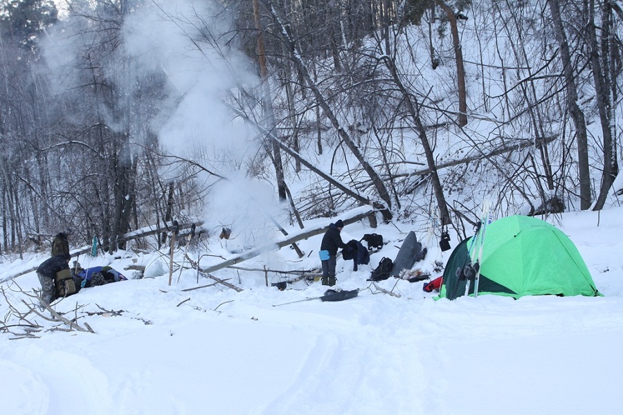 В этот раз погода стояла по-настоящему зимняя. Особенно запомнилось начало экспедиции, когда, добравшись общественным транспортом до начальной точки, мы оказались на тридцатиградусном морозе среди бескрайних волжских просторов. Казалось, что воздух звенит от холода, лес насквозь промерз и деревья стоят прозрачные словно ледяные.
