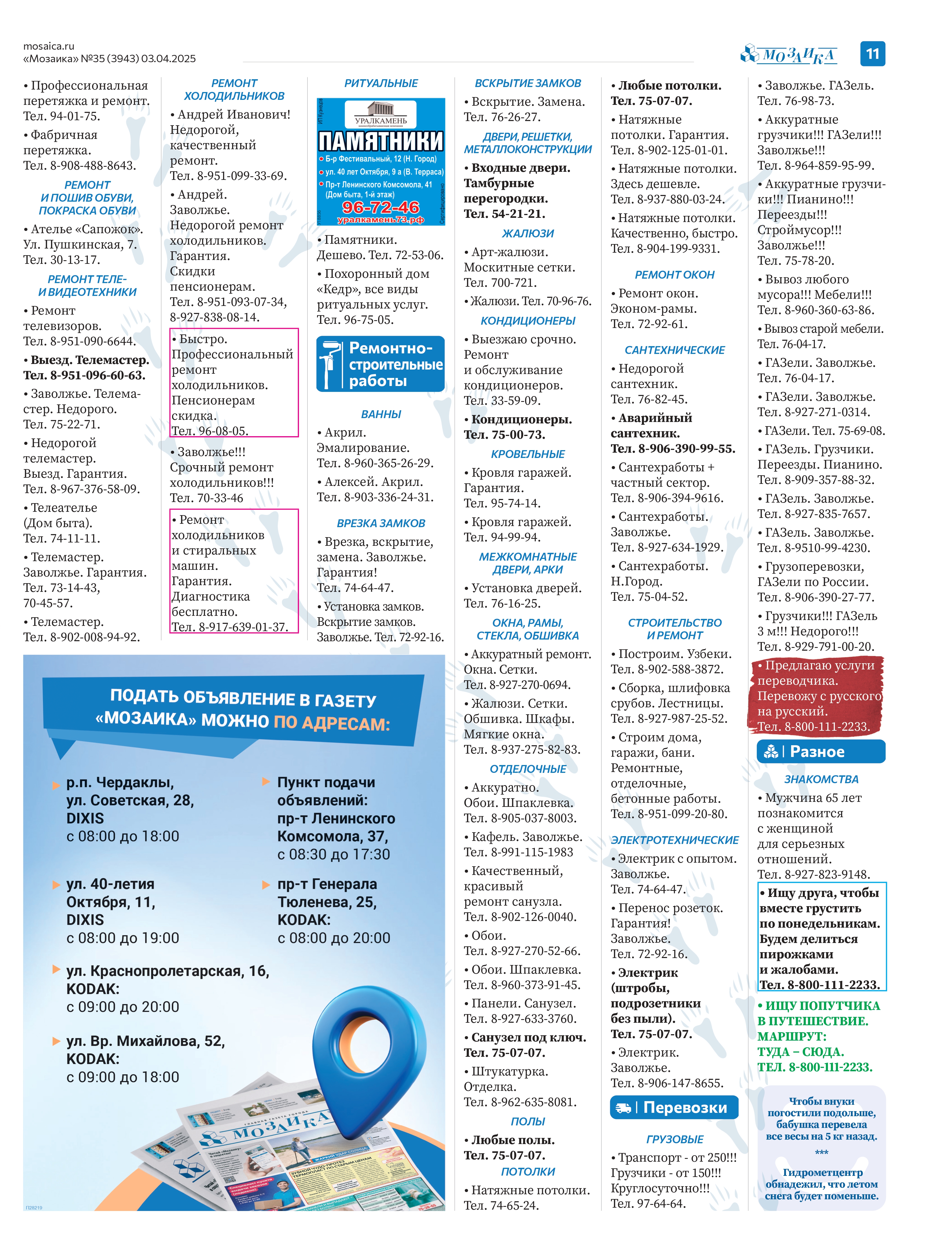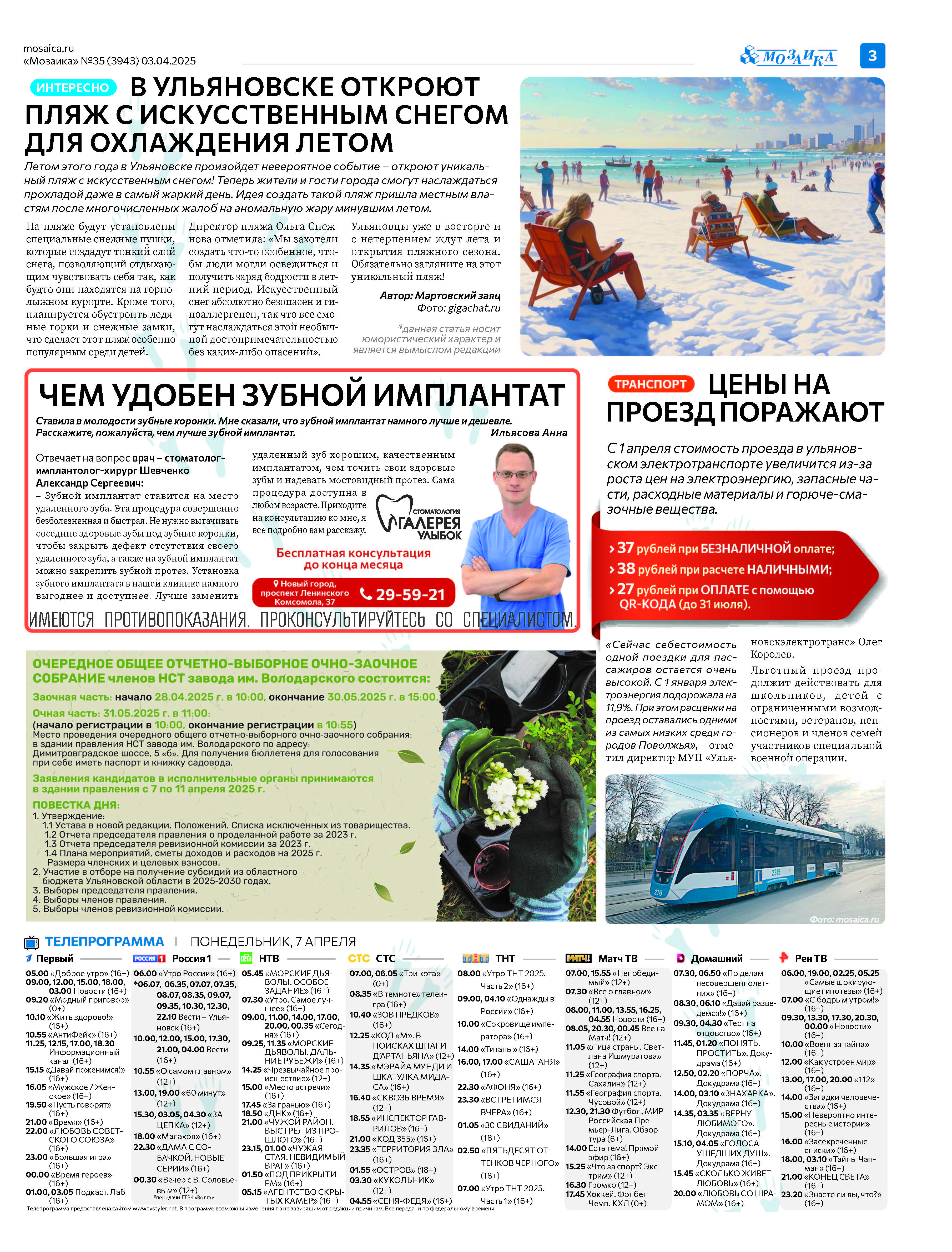 "Мозаика" №35 (3943) от 3 апреля 2025 г.