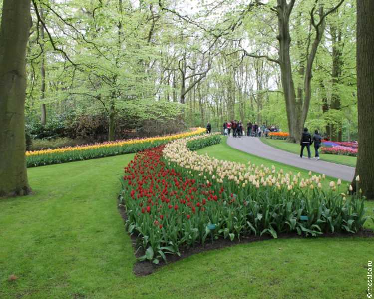 Сегодняшний парк занимает 32 гектара, почти полностью засаженных тюльпанами и украшенных аллеями и прудами.