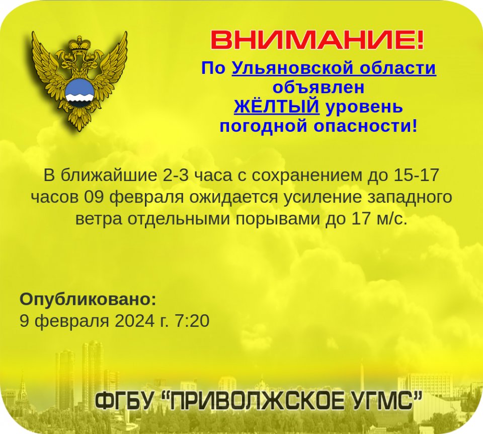 С утра пятницы, 9 февраля, в Ульяновской области бушует сильный ветер. Из-за него в регионе объявили «желтый» уровень опасности. Соответствующее предупреждение появилось на сайте Приволжского УГМС.
