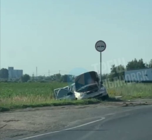 Легковушка слетела в кювет. Уточняется, что рядом с местом аварии расположен дорожный знак «Обгон запрещен».