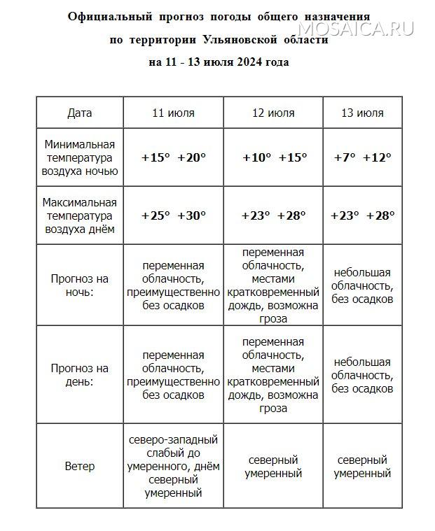 Таким образом, на рабочей неделе в Ульяновской области сохранится в основном сухая и теплая погода. Однако к выходным прогнозируется существенное похолодание, особенно по ночам. В некоторых районах возможны кратковременные дожди и грозы.