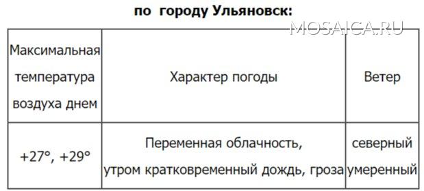 В Ульяновске утренняя температура воздуха будет держаться от +19…+20 градусов. В обед станет гораздо теплее до +27…+29 градусов. В небе сохранится переменная облачность. В первой половине дня ожидается незначительный дождь.