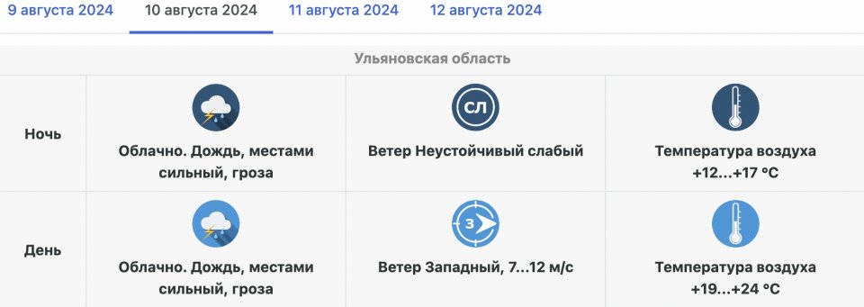 Дожди и похолодание: ульяновские синоптики подтвердили негативный прогноз на выходные 10 и 11 августа