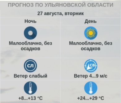 Прогноз погоды в Ульяновской области на 27 августа