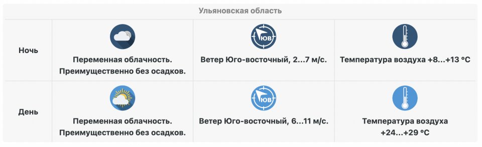Синоптики Gismeteo в своем прогнозе погоды по Ульяновску в целом солидарны с коллегами. Правда, они обещают жителям областного центра не такие высокие температурные показатели. По данным сервиса, воздух в Ульяновске 11 сентября прогреется максимум до +26 градусов.
