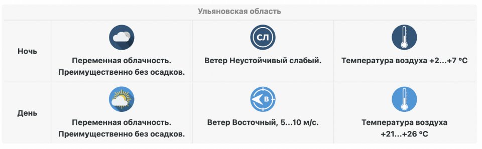Сервис Gismeteo в свою очередь дает отдельный прогноз по Ульяновску. Сообщается, что в областном центре завтра будет ясно и без осадков. Воздух прогреется максимум до +24 градусов.