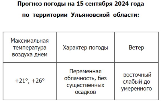 Так, сегодня, 15 сентября, на территории Ульяновской области синоптики прогнозируют переменную облачность. Дождя ожидать не стоит. Максимальная температура воздуха в дневные часы поднимется до +21...+26 градусов.