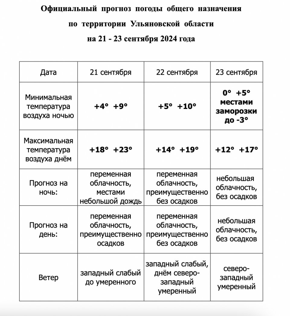 В ближайшее время в Ульяновске изменятся погодные условия — жители региона ощутят настоящее дыхание осени. Перемена погоды, как поясняют синоптики, будет связана с влиянием ложбины северного циклона и атмосферных фронтов. Гидрометцентр опубликовал официальный прогноз погоды общего назначения по Ульяновской области на ближайшие 3 дня.