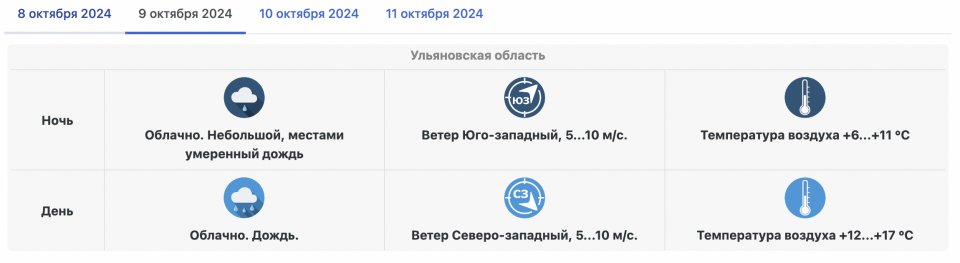 Прогноз погоды обещает ульяновцам похолодание и дожди