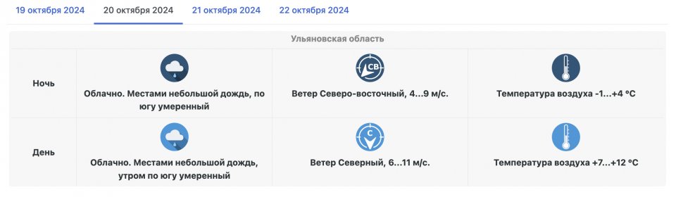 Ульяновские синоптики обновили прогноз погоды на 20 октября 2024