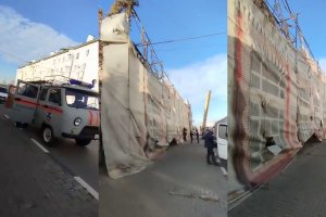 «Мы сняли старый тент и при необходимости укрепим строительные леса для установки нового полотна. Затем повесим подготовленный баннер», – добавил городской глава.