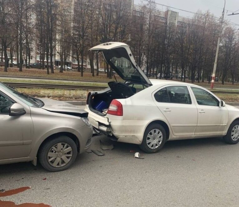 По предварительным данным, водитель маршрутки не успел среагировать на ситуацию на дороге и, не сумев вовремя остановиться, врезался в легковой автомобиль ВАЗ. Удар от маршрутного такси оказался силен, и автомобиль отбросило на припаркованную рядом Шкоду, что привело к новым повреждениям.