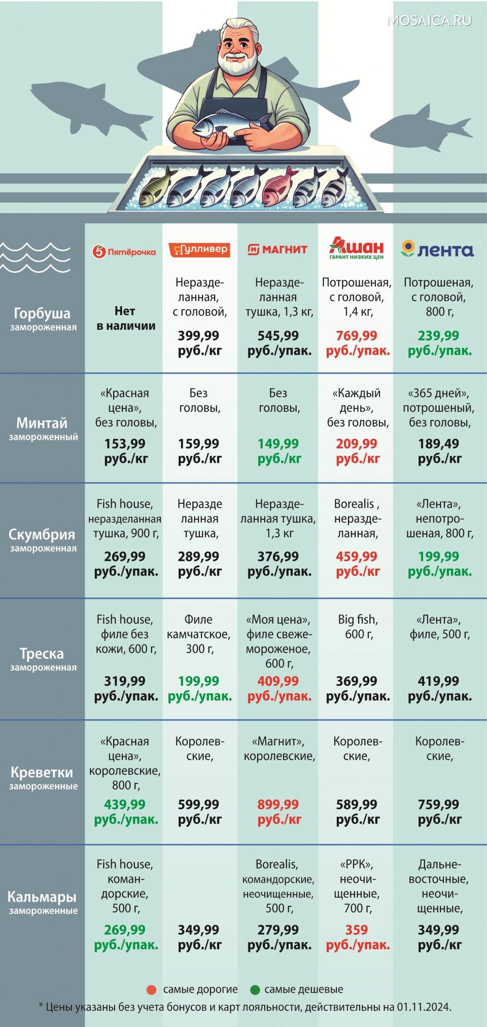 Корреспондент газеты «Мозаика» сравнил цены на рыбу и морепродукты в популярных магазинах нашего города.