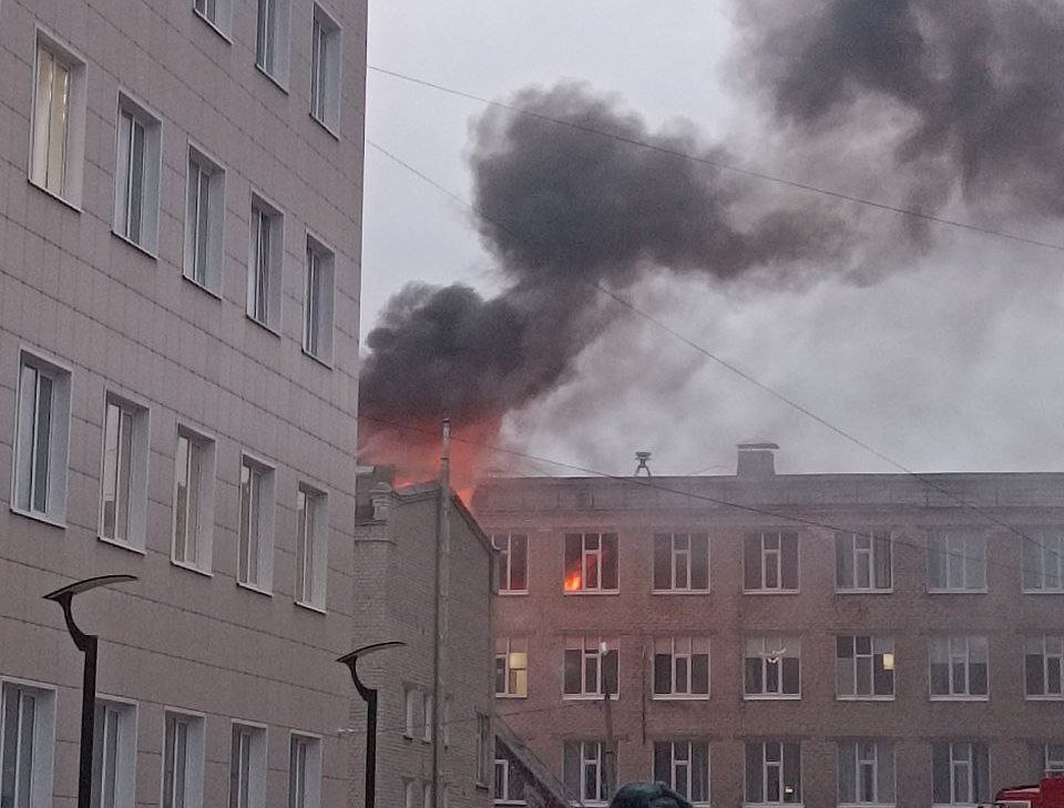В 16:30 стало известно, что огонь охватил здание института. По предварительным данным, возгорание произошло в столовой учебного заведения. Есть версия, что эпицентр пожара находился во втором учебном корпусе. Некоторые считают, что огонь возник на крыше, где в настоящее время ведутся ремонтные работы.