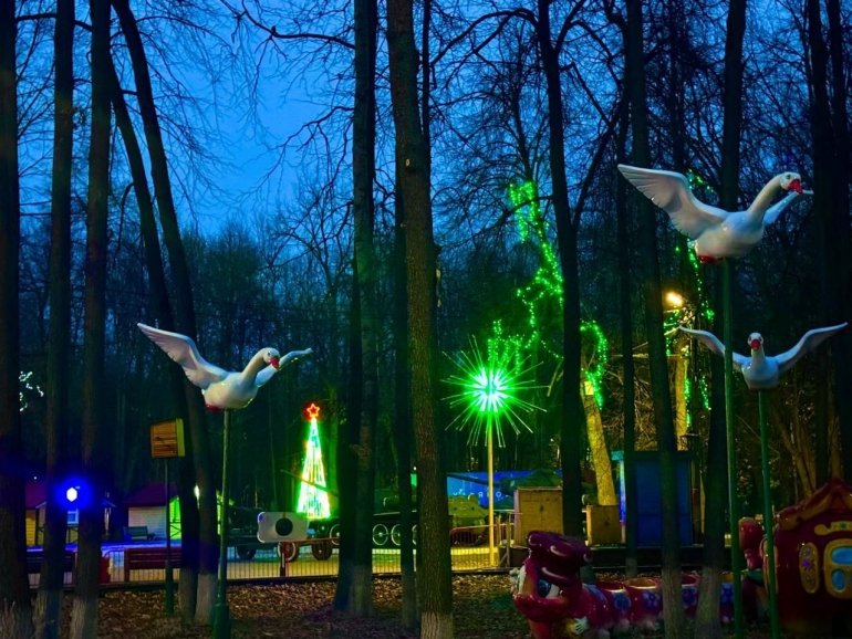 На официальной странице мэрии опубликовали фотографии того, как преобразился парк к праздникам. Осталось лишь установить световые конструкции на центральной аллее, чтобы завершить декоративное оформление.