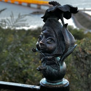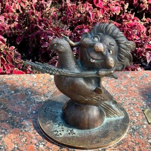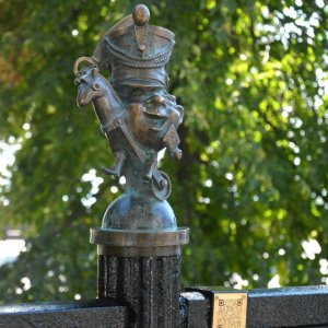 Младший колобок, символ проекта «Ульяновск — литературный город ЮНЕСКО», находится напротив педагогического университета. Для успешного начала учебного года или нового дела необходимо потереть помпон на его шапочке.
