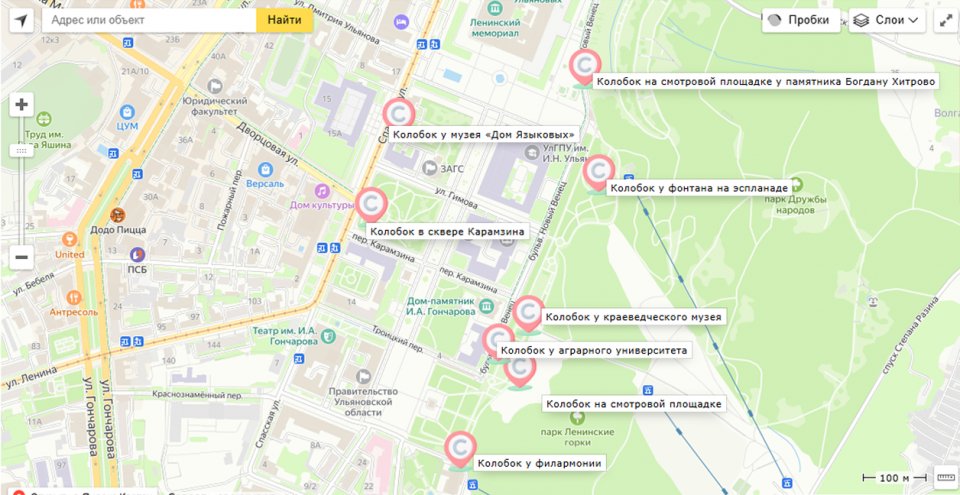 Карта Колобков в Ульяновске и их значение. Туристический квест Колобка.