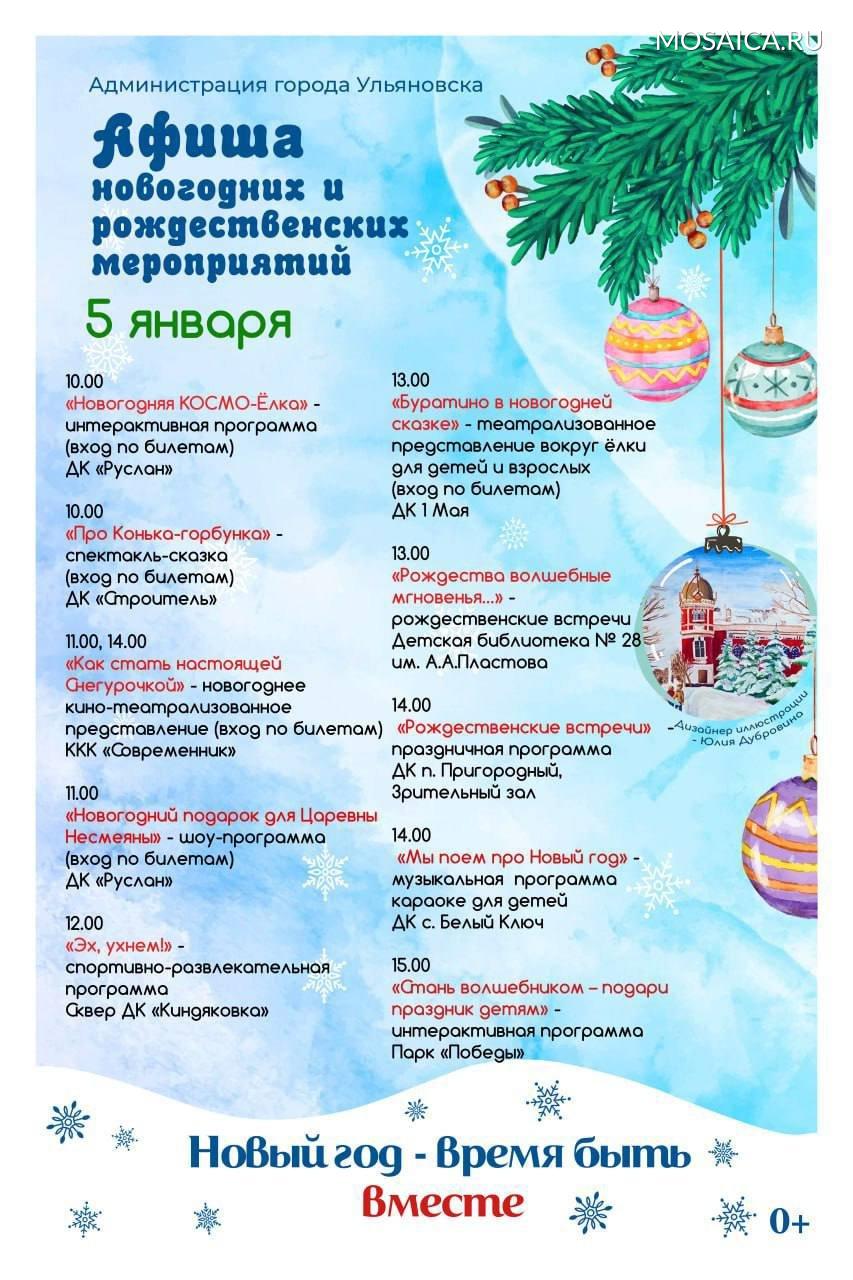 Администрация Ульяновска опубликовала план новогодних и рождественских мероприятий, которые пройдут в городе 5 января.