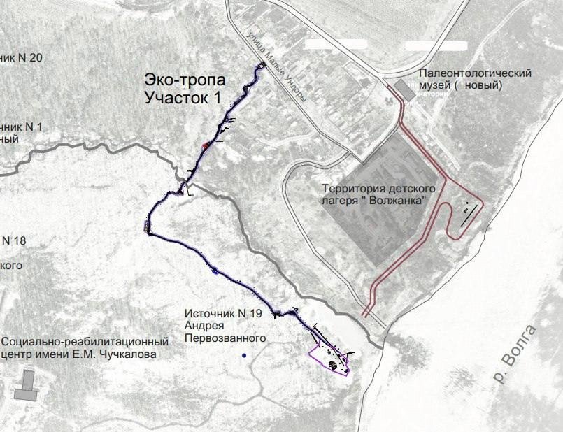 Рабочим предстоит обустроить подходы к источникам, зону отдыха и даже детские площадки. Через ручей установят мост на сваях. Вдоль тропы смонтируют освещение, а также установят информационные стенды. Они будут содержать сведения о птицах, мамонтах, морском дне и ихтиозаврах. На берегу Волги появятся новые инсталляции — с хвостами китов и с отпечатками лап динозавра.