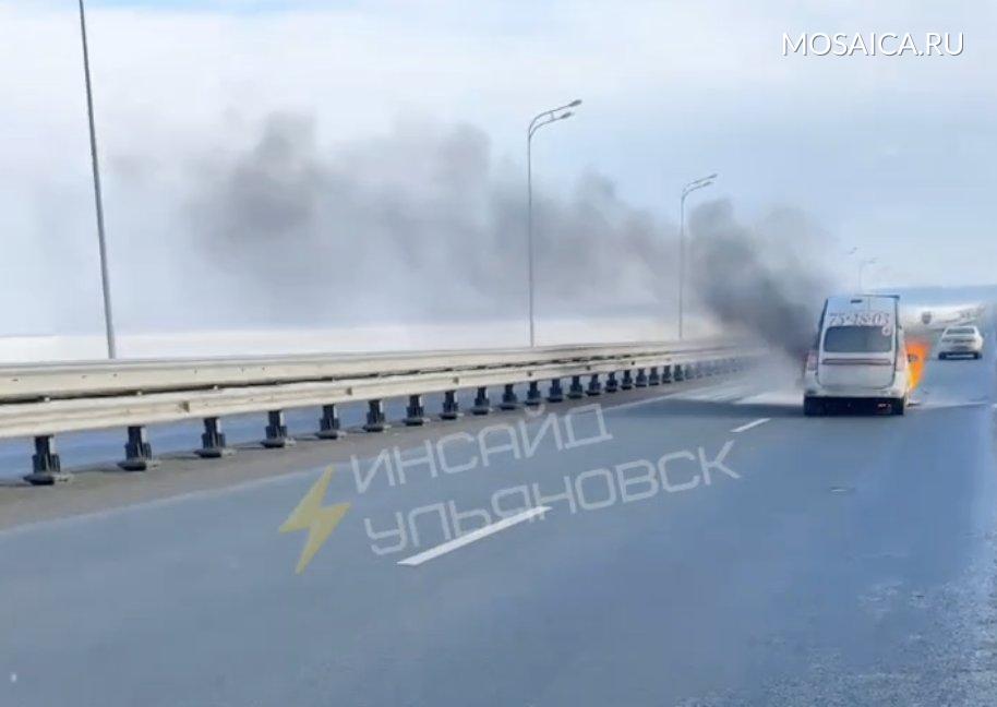На Президентском мосту в Ульяновске полыхает машина скорой помощи