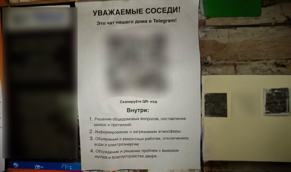 Злоумышленники размещают объявления с QR-кодами на подъездах жилых домов, предлагая жителям присоединиться к домовым чатам. Когда кто-то сканирует указанный код, он попадает на фальшивый сайт, где его просят ввести личные данные. Как только информация оказывается в руках преступников, они получают полный доступ к аккаунту жертвы.