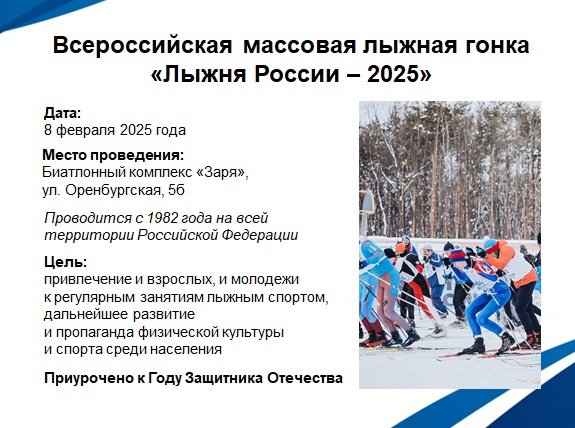 В Ульяновске 8 февраля пройдет массовая гонка «Лыжня России - 2025»