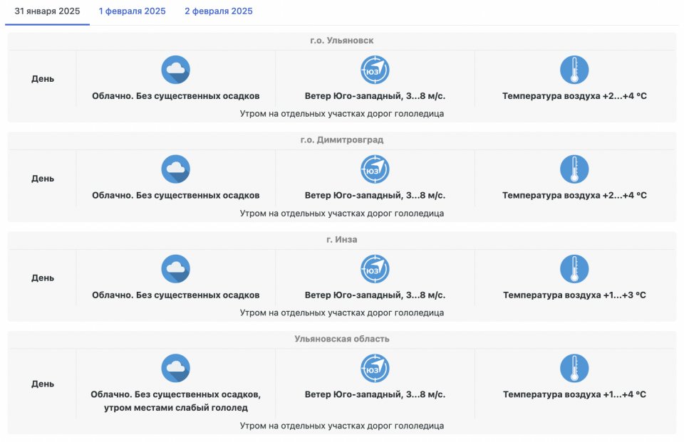 Прогноз погоды по Ульяновской области на 31 января 2025 |