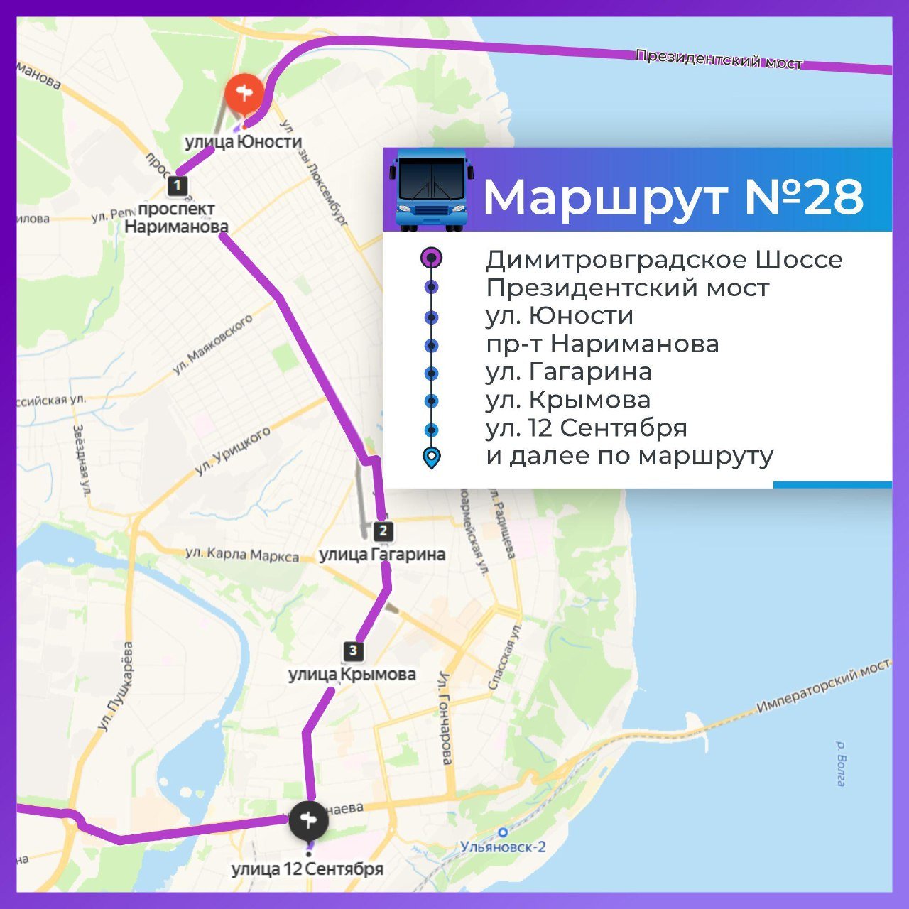 В это время для переправы через Волгу доступен Президентский мост. Общественный транспорт сворачивает на него после Димитровградского шоссе. В субботу, 1 февраля, администрация Ульяновска опубликовала схемы движения автобусов, на которых можно добраться из Заволжья на правый берег и обратно по выходным.