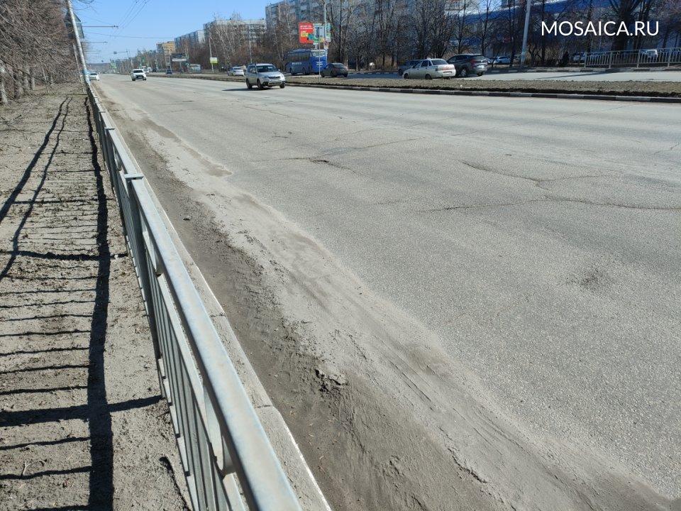 На проспекте Тюленева двое рабочих с лопатами убирали песок у рынка. А вот на Ленкома – никого, хотя проезжая часть там сильно загрязнена.