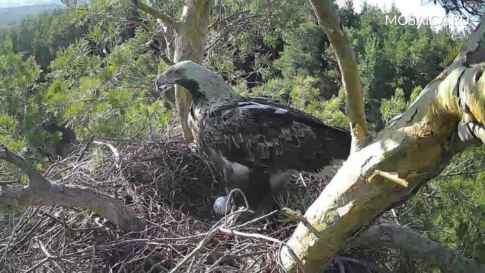 По данным нацпарка, после возвращения в родное гнездо орлы провели три недели, готовясь к сезону размножения. Они занимались ремонтом гнезда и формированием лотка для яиц. Орел Белогор заботился о партнерше, подкармливая Арбушку и создавая условия для размножения. Теперь орлы перешли к следующему этапу — насиживанию кладки.