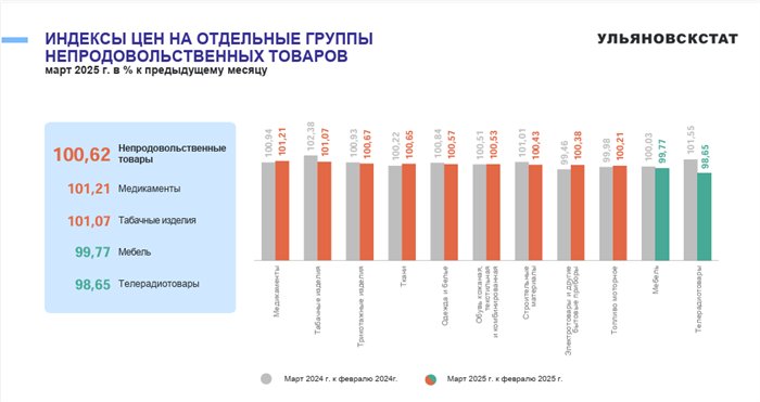 Мартовские изменения в ценах на непродовольственные товары в Ульяновской области в целом отражают незначительное, но стабильно происходящее подорожание.