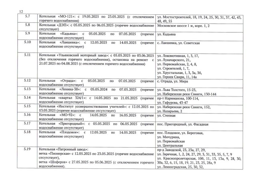 Подробный график и адреса отключения горячей воды в Ульяновске в 2025 году опубликованы ниже.