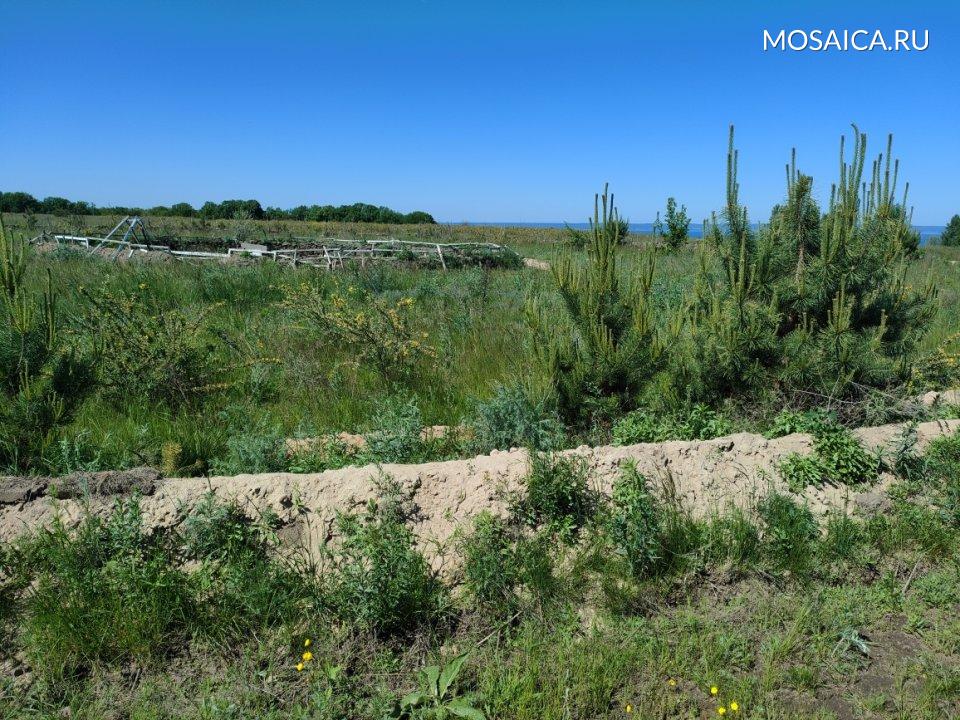 По краям круга посажены сосенки. Внутри — ещё один круг с ямой в центре. Там что-то вроде грядок, но ничего не посажено.