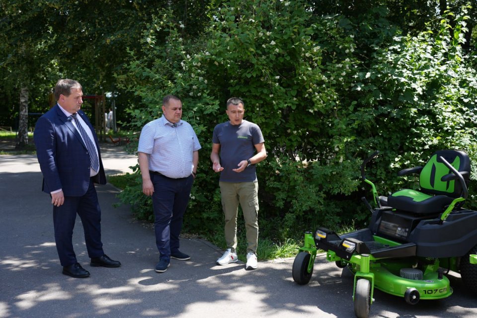 Болдакину и представителям муниципальных коммунальных служб презентовали образцы оборудования нового поколения — аккумуляторные электропилы, газонокосилки, уличные пылесосы и другой электрический инструмент, ориентированный на экологичную эксплуатацию в городских условиях.