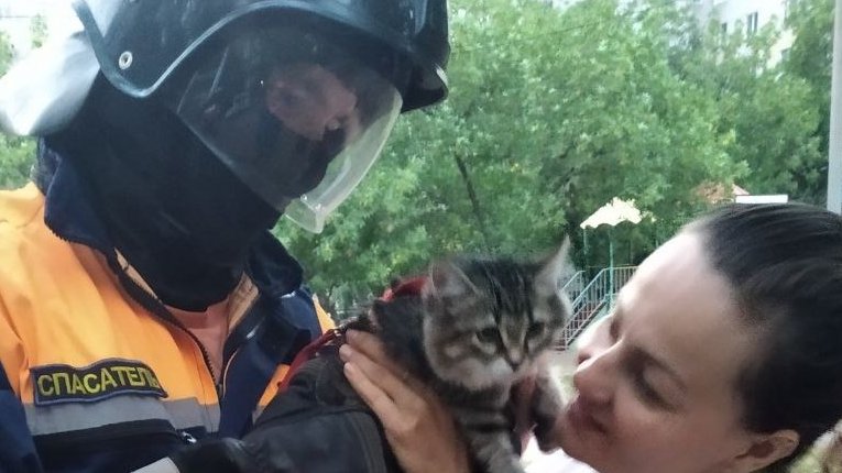 На вызов приехали спасатели МБУ «Управление гражданской защиты». С помощью трёхколенной лестницы они поднялись к животному, аккуратно сняли его с ветки и вернули хозяйке.