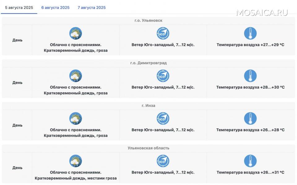 Ульяновские синоптики обновили прогноз погоды на 5 августа 2025