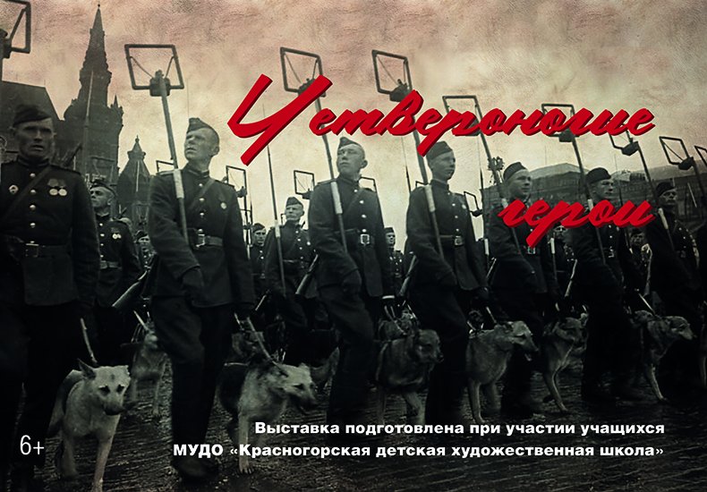 Выставка включает рисунки учащихся Красногорской детской художественной школы, дополненные архивными фотографиями. Отдельный раздел посвящён знаменитым собакам-героям, таким как сапёр Джульбарс, диверсант Дина и связист Рекс.