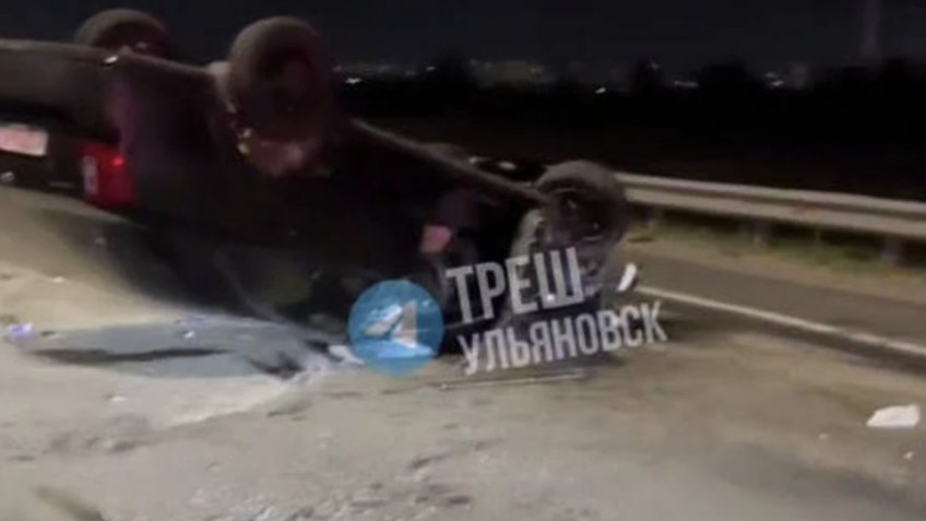 В Ульяновске водитель Chevrolet столкнулся с Lada Kalina и перевернулся на дороге