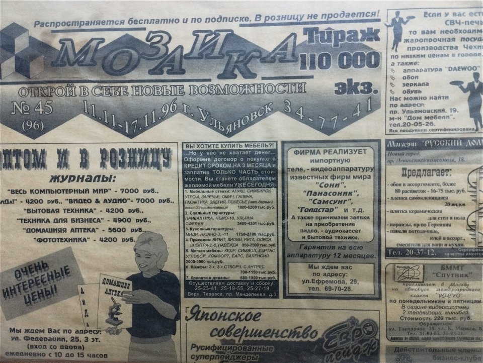 За 31 год (без малого) свою рекламу на страницах «Мозаики» размещали большинство компаний Ульяновска.