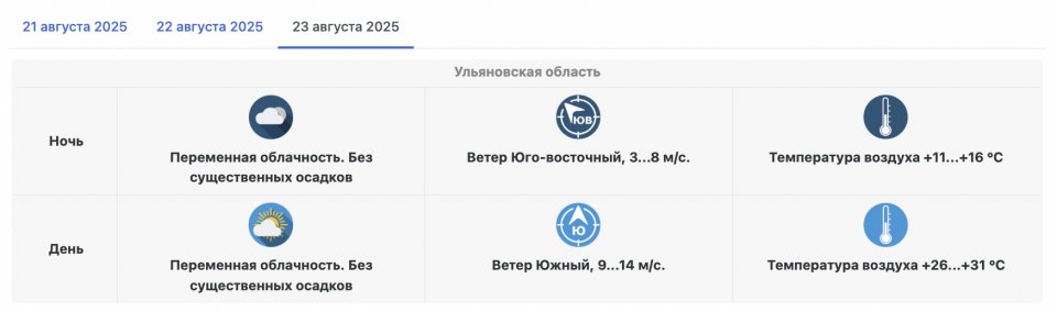 А вот в субботу жара перепрыгнет отметку +30. Об этом свидетельствует официальный прогноз ФГБУ «Приволжское УГМС». Итак, в дневные часы 23 августа воздух по области прогреется до +26...+31 градуса. При этом будет дуть южный ветер 9-14 метров в секунду. Ожидается переменная облачность, существенных осадков не обещают.