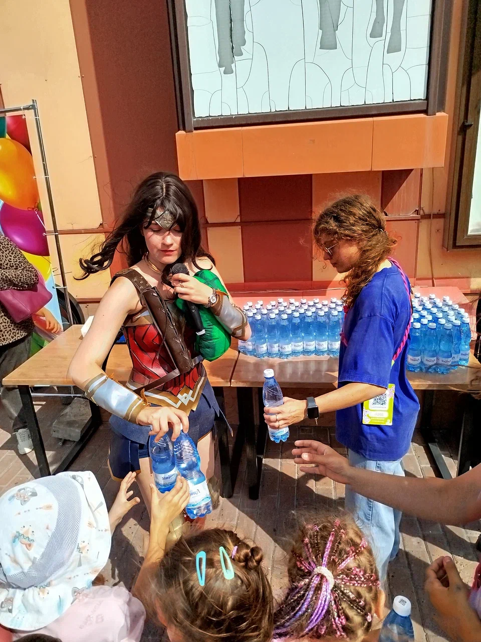 Гостей встречали Человек-паук, Бэтмен и Чудо-женщина, которые приготовили для детей и взрослых увлекательную шоу-программу и конкурсы. Особый восторг вызвало крио-шоу: зрители с замиранием сердца наблюдали, как живые розы превращались в хрупкие стеклянные фигуры, а воздушные шарики взаимодействовали с холодным азотом. Настоящим волшебством стало шоу мыльных пузырей: переливающиеся всеми цветами радуги гигантские пузыри перенесли гостей в мир фантазий. Дети с азартом ловили их, а взрослые на мгновение возвращались в детство — это читалось в их улыбках и сияющих глазах.