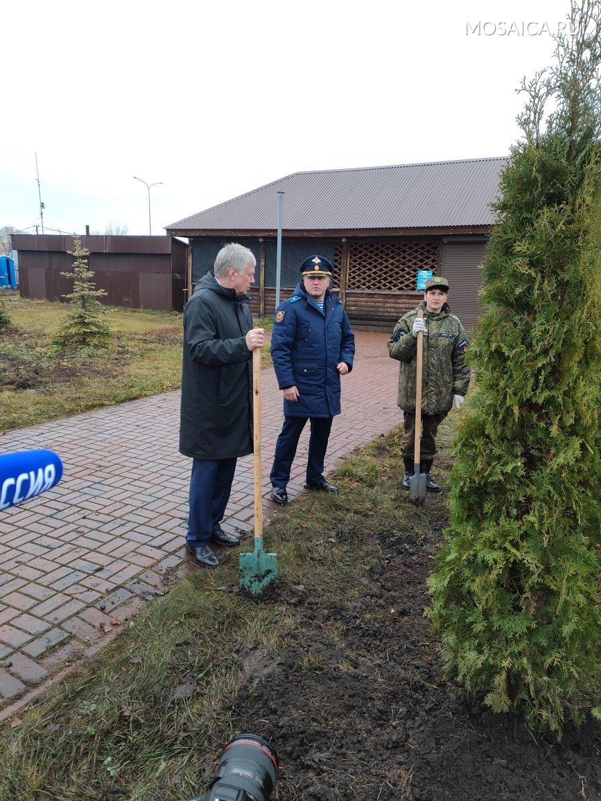 После торжественных речей почётные гости возложили цветы к новым памятникам. Затем губернатор Русских символично посадил ель.