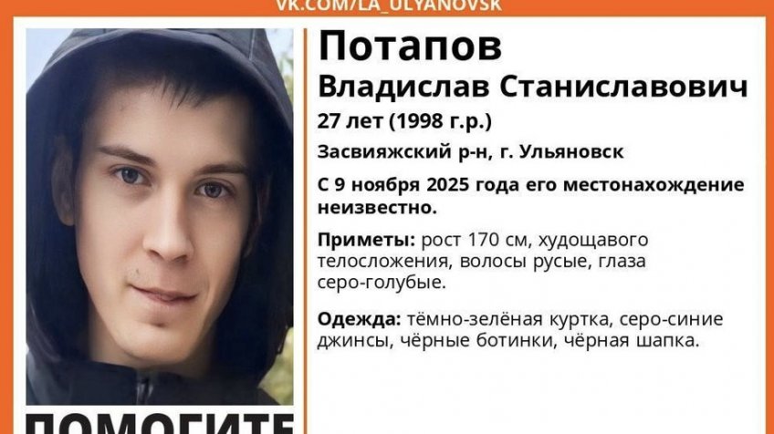 Поисковый отряд «ЛизаАлерт» объявил о розыске без вести пропавшего жителя Ульяновска. 27-летний мужчина ушёл из дома и перестал выходить на связь 9 ноября. Его последнее известное местонахождение — Засвияжский район.