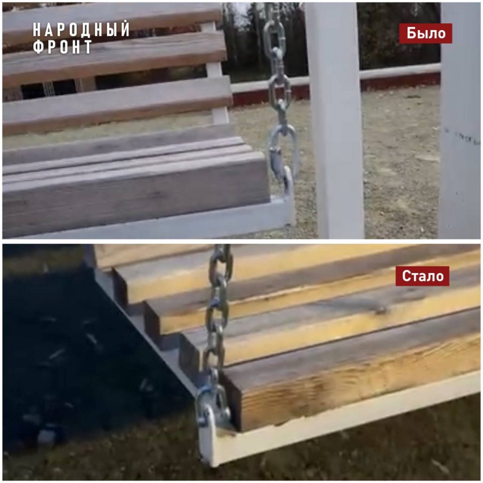 Одним из первых вопросов стала детская площадка: установленные там карабины, которые не соответствовали требованиям безопасности, демонтировали и заменили болтовыми креплениями. По такой же схеме усилили и лавочки — каждую рейку закрепили дополнительными соединениями, чтобы исключить люфт и поломки.
