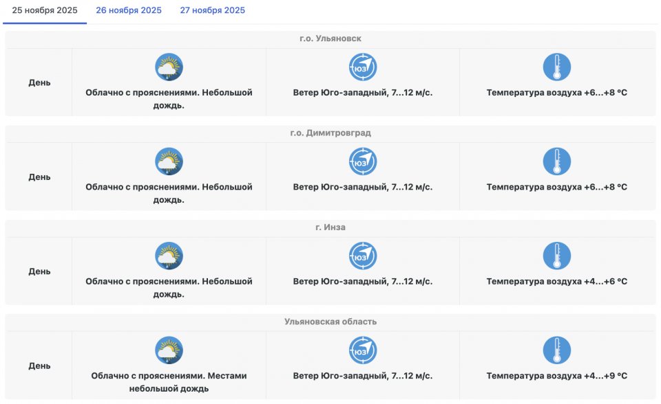 Температура выше нормы: ульяновцам озвучили прогноз погоды на 25 ноября