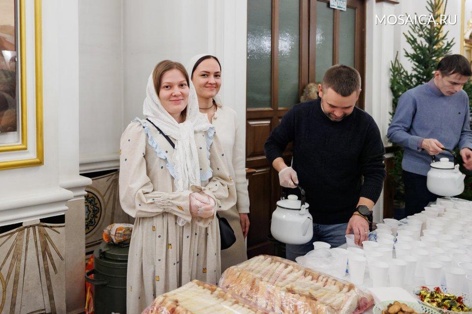 После праздничного богослужения для всех молившихся в соборе была организована трапеза.