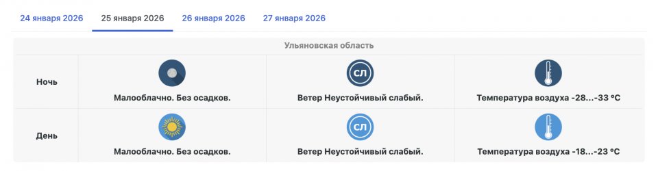 Синоптики обновили прогноз погоды по Ульяновской области на 25 января